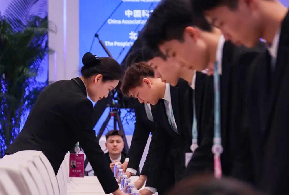 在中关村论坛服务保障中,公司统筹调配53名支援人员负责高级服务、管事部服务、厨师服务等工作,以严谨细致的专业素养,为参会嘉宾提供高效便捷的会务体验;全力保障驻场办公餐、茶歇、嘉宾代表自助餐及现场简餐供应,确保餐饮服务安全、高效、有序开展。