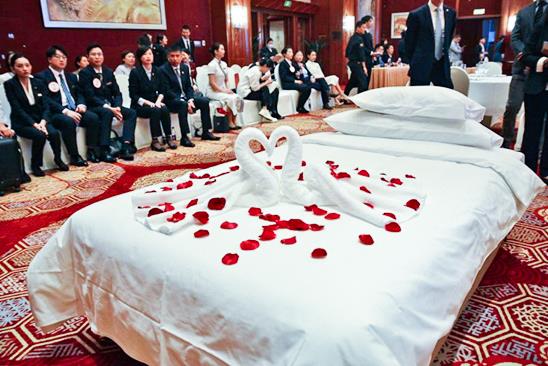 客房服务方面的技能竞赛包括做床及巾类折叠、衬衫折叠两个项目。选手们严谨、细致,充分展现出对每一步操作细节和标准用时的精准把控。